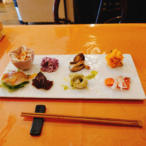 前菜盛合わせ8種類にミニサラダです。 ホームページにもある様に、 前菜は和を感じるおばんざい的な美味しさ。
