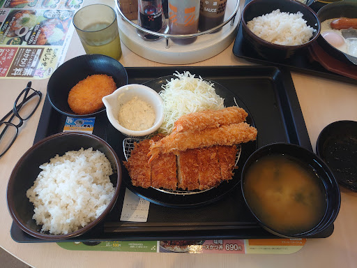 Read more嫁が、急に牡蠣フライが食べたいと言いだした。また😅 チェーン店の牡蠣フライでいいからと、松のや南昭和町店へ! 嫁は、普段から牛丼やとんかつなどのチェーン店に行くという事がないので自分も松のやは、初めてです。昼時だったので多くのお客が食事をしていました。店内に入って券売機で、食券を買うのですが、後ろでお客が待っていたらゆっくりメニューをみて選ぶ事が出来ない😓 食券を購入すると、自動的に厨房に連絡がいくらしく店員に食券を渡そうとすると変な顔された😓初めてだったら分かるか😡 嫁のお目当ての海鮮盛合せ(カキ·アジ·海老)の提供は、びっくりするくらい早かったのですが、自分が頼んだ増量カキフライとじ丼と、豚汁は嫁が半分以上食べた位に番号が、呼ばれて取りに行ってやっといただける事に!! お米は、以外に美味しくカキフライも何処産か分かりませんが、揚げたてなので美味しかったです。 しかし、食券を購入して店内に入っても「いらっしゃいませ」返却口に食器を返して店外に出る時も「ありがとうございました」の一言もない!(言ったかもしれないが自分には聞こえなかった) ただ、注文を受けた食事を作っているだけで接客の欠片ひとつも感じる事なく あまり気持ちのいい食事になりませんでし...