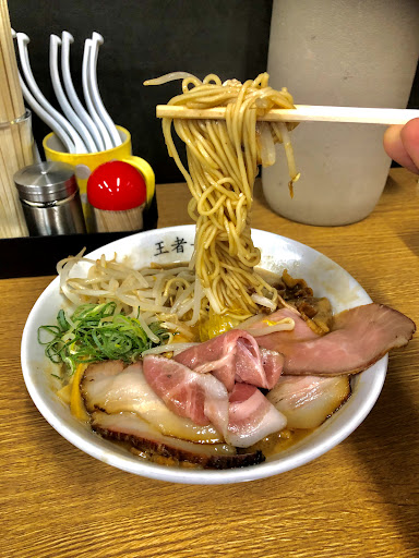 だいたいラーメン屋は3度ほど行く。 この店は限定を食べに3度、徳島ラーメンを食べに1度行ったが、それ以上はもういかなくてよいかと思った次第である。 ところで店が臭い臭いと書かれているが、臭いのは豚骨ラーメン屋なのである程度仕方ないと思っている。だから特別この店が臭いとは思わない。ただ、おしゃれして行きたい人は注意が必要だろう。 臭いことより何よりこの店はとにかく雰囲気が良くない。 写真を撮る人をチェックし、睨みつけているのを見たことがある。そんな顔するならいっそ禁止にすれば良いかと。どの店でも写真くらいは普通だろうと思う。特におばさん店員の態度と年齢不詳の女の子?の態度が悪い。あの二人は今もいるのだろうか?厨房の奥で髪を染めたヤンチャ系のおそらくバイトは、きっちり帽子を被らせた方が良い。この髪型で雇っているのは指導が足りないと感じる。衛生面より見た目を重視したいのか、そういうスタッフがいるお店はどうにも清潔感を感じないし、客のことを大切にしようという風に個人的には感じない。ぜひ衛生面に気を遣って欲しいところ。 さて、肝心の味だが徳島ラーメンは好みがハッキリ分かれると思う。個人的な好みで言えば嫌いではない。 人によっては食べる前の見た目が悪いから食欲は沸かないかも。この点はこの店もそう。どんぶりの淵が汚れたりするのが気にはなる。肉さえ乗ってればいいだろう的な雑な盛り方がなんとも好きではない。 これはどこ徳島ラーメン屋でも同じだと感じる。 とにかく肉と油が凄すぎて、これを油っこいととるか、コッテリ系ととるかは人によるだろう。 そういう意味では基本的に若者向けなのだ。若者にウケるので食べログやSNSでバズるのだろうと思う。それは戦略としてありだろうとは思う。 個人的にはこの店の徳島ラーメンが他より特別旨いかというとそうでもない。が、悪くもない。 正直、徳島ラーメンって、個性が出しにくいとと思う。 この店で食べるなら、なぜか力を注いでいる限定ラーメンだろう。 ただ、この限定ラーメンも選ばないと値段が高いだけのものもかなりある。何がおすすめかと言うと、この店だけで言えば王者家だろうと思う。 そうそう全体的にとにかく高い。いいものを使っているのだろうが、それがきちんと味に反映されているかというと、微妙なものもあった。チャレンジ精神は買いたいが、客に出す以上、値段に応じたものを出して欲しいと思う。