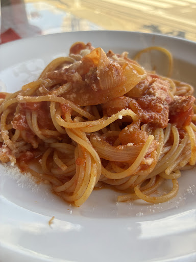 そしてミニサラダに、 メインのパスタが来ると、 やや太麺にしっかりアルデンテ❤️ パスタはアマトリチャーナにしました☆彡