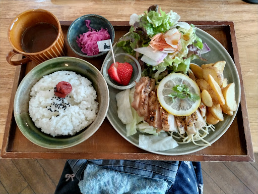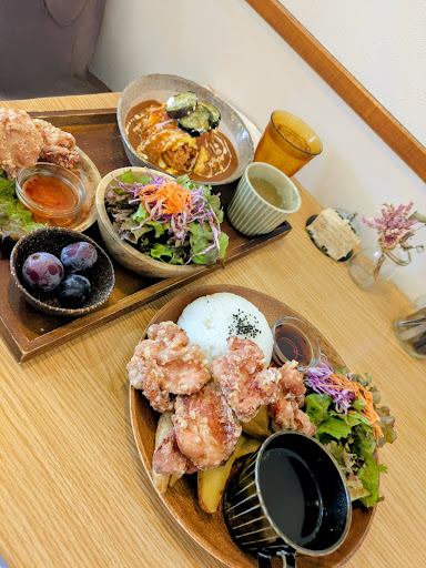 Read moreかわいらしい素敵なカフェです♪ 一番乗りでOPEN時間の11時ちょうどに伺えてすぐに席に案内していただきました。 とても丁寧で明るく優しい雰囲気の店主さんで、人気のカフェですがワンオペでされている日もあるようでお邪魔した日もワンオペでご迷惑をおかけしますが精一杯頑張りますのでよろしくお願いしますとの事をお店前の張り紙に書かれておりとても微笑ましく感じました♪ 私は唐揚げプレートを、友達は月替わりランチのデミグラスソースのオムライスと唐揚げのセットを注文しました。 ワンオペとの事でゆっくり待とうと思っていましたがあっという間に熱々揚げたての唐揚げののったランチが運ばれてきて、唐揚げは大ぶりの4つサクサクジューシーでとても美味しかったです♪ 普通のサイズでも満足度が高いですが、メニューにも載っていますが唐揚げ増量出来たりご飯も唐揚げも増量出来たり、どちらも減らせたり色々配慮してくださるので沢山食べる方や少食の方皆さん満足出来るのではないかと思います。 食後のデザートでランチ注文した人だけ頼めるミニパンケーキセットも追加で注文しました。 小ぶりのフワフワパンケーキ2枚たっぷりのホイップクリームとかわいいサイズのアイスも乗ってこちらも美味しくて大満足♪ 食事を終える頃にはほぼ満席でお忙しい中でも変わらず丁寧でニコニコ対応してくださる素敵な店主さんと美味しいランチで友人ととても幸せな時間を過ごすことができ感謝です♪ またぜひランチもパンケーキメインでも利用させて...