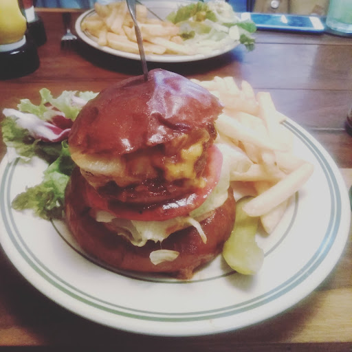 The burgers here are enormous. If you like meat, one of these will more than satiate you. There are many varieties with all kinds of weird toppings like avocado and pineapple. They are so big that they are hard to eat in a conventional way. You need to pick the burger apart with a knife and fork because it's too big to hold in your hands.