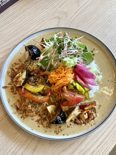 ご覧の様に、 とても美しく繊細なスパイスカレー♡ 野菜たっぷり! 切り方や種類も素晴らしい! そしてチキンもゴロゴロで、 カレーと言うより、 ソース♡と思うくらいの、 リッチなカレーソースです。 辛味も最初は甘さと風味がありますが、 最後はスパイスの嵐で、 パンチもあります☆彡
