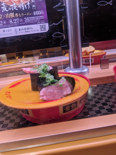 商品は回転レーンより運ばれてきますが、席の前では止まらず、音声のみの事前告知となりますので、取り忘れには注意が必要です。