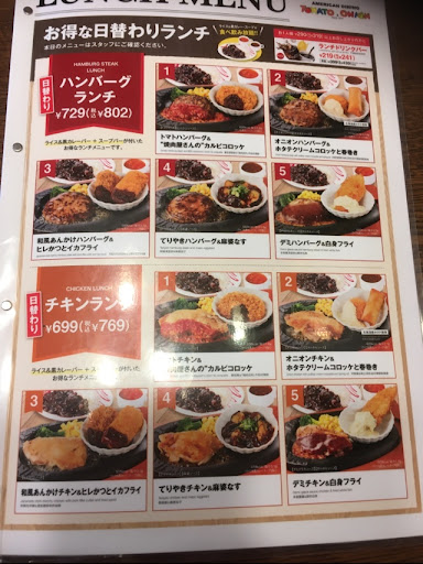 R6.5.13 日替わりハンバーグランチ(月曜)¥879と、チーズたっぷりイタリアンハンバーグ¥1044と、ランチサービス(ライス&黒カレーバー)¥110を注文しました。