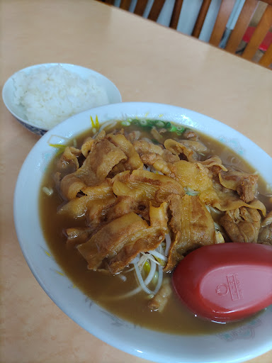 Read more変わったメニューの 表示で、(上)とは、 何かと訪ねたところ肉入りらしく 月見そば(上)は、肉玉入りそばらしいので 月見そば(上)を いただきました。(息子は、中華そば&焼き飯セット) 見た目は、濃いそうですが、超あっさり!(悪く言えばコク 旨味なし)今時の徳島ラーメンを 食べていると 物足りない気がします。息子曰く 焼き飯は...