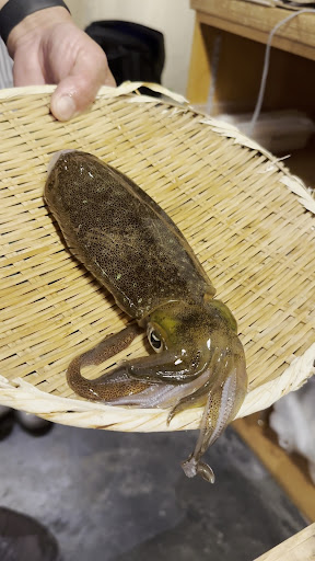 今朝、銚子からとってきたイカをそのまま刺身でいただきました! 動いていました! 神経締めてないそのままとのことでしたので、取り立てホヤホヤですね。 イカは緊張すると黒くなるそうで、かなり緊張しているみたいでした。