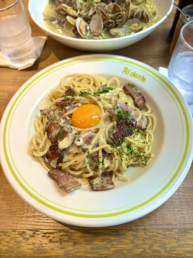 Read moreArudentei is a relatively inexpensive Italian restaurant located in the underground shopping arcade under Ginza 5 (and they apparently have locations in Shinjuku as well). This location seemed to have a particularly loyal following, and it must have been closed at one point because they have a board on the wall in Japanese saying “thanks to your support Arudentei returned to Ginza,” with a bunch of little post it notes from customers saying how much they like it. I ordered the signature bacon pasta in a garlic olive oil sauce, and my partner had a seafood pasta. The menu is a typical Japanese-Italian fusion, in that there are a lot of pasta dishes that are designed for Japanese taste buds. My pasta was good, the bacon was delicious, the actual sauce was good but a little too oily. Overall prices are reasonable. Service is straight forward, not excellent, but nothing I would complain about either. The atmosphere is what one would expect from an underground shopping...
