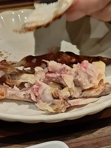 私は悲しくも減量中につき、看板料理の半身鶏唐揚げは今回はお預けで、国産鶏肉のたたき、低温調理鶏レバーを注文。 たたきはポン酢、醤油、塩でいただくスタイル。新鮮である為、塩が合って美味い。 レバーは胡麻油で和えてあり、そのままで美味い。加熱しすぎず絶妙な食感。