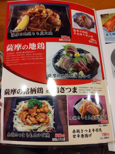 このお店は鹿児島の薩摩のお店で、薩摩串焼き、釜めし等が名物のようで、薩摩の赤鶏さつまという地鶏や桜島美湯豚、魚は薩摩のカツオやきびなごなどを提供するようです♪