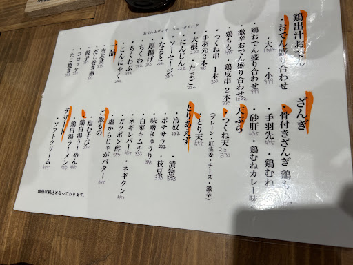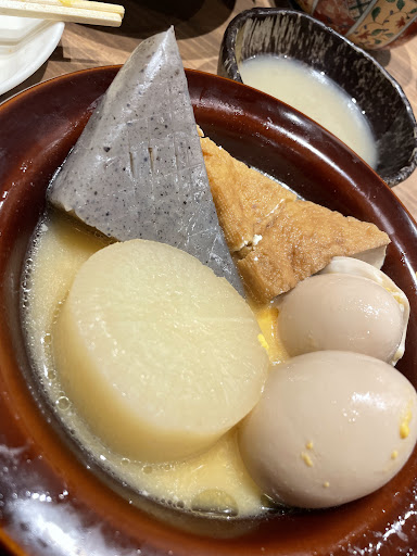 Read more新しくできたおでんとザンギのお店。おでんが大好きなのでプレオープンに早速行ってみました。お店は満員でなかなか入れません。おでんは鶏だしの優しい味。初めてきくらげとコロッケのおでんを食べました。コロッケは熱々、きくらげもしっとりしっかり味がついててすごく美味しいです。 お値段の割に切り方大きめ、鶏もも、餃子もザンギも一つ頼むとたくさん入ってるのでどのお皿もボリューム多めなのでいくつも頼むとえらいことになります。w そしてどのお皿もおでんのだし汁が並々でくるのでだし汁を飲むのが追いつきません。w お店の方が、一皿にたくさん入ってるから、注文数多くて食べられないかも?と注文数を調整してくださいました。親切です。 コスパとってもいいです!コロッケも餃子も熱々でおかわりしました。手羽先ザンギは皮パリパリもう...