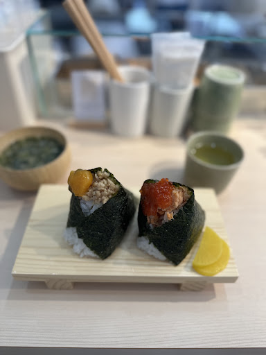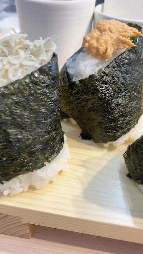 食べたのは写真の通り、筋子、明太マヨクリームチーズと卵黄醤油漬けでした。 筋子は大きいのしかなくて大きいのを頼みましたが、 他は小にしました。それでも十分な量があります。 食べかけの写真が見せられないのですが、中身は具沢山で、大満足できました。 店内で香ばしいノリの匂いと店員さんの笑顔で食欲がそそります。 店長に聞いたら、世界一のおにぎりチェーン店を目指すことで...