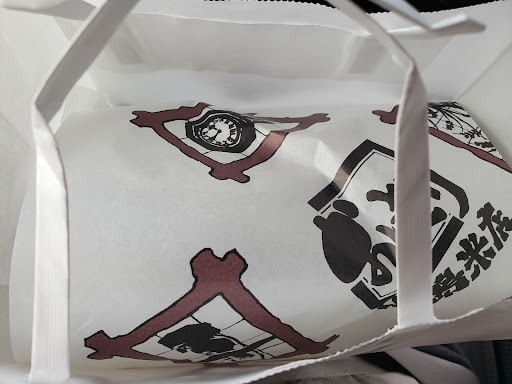 上にかけてくれた紙がまた懐かしい…!!おにぎりやさんといえばこういう包み紙だよね…!!プラ容器だから 直射日光当たらないように紙を乗せてくれたのかなと…!