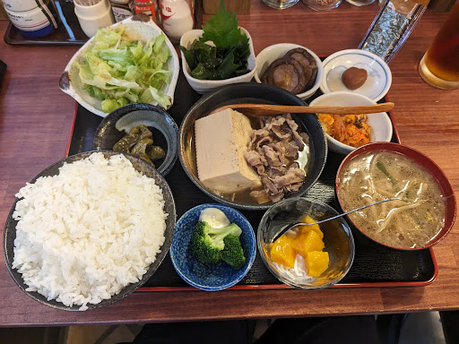 牛切落し肉豆腐の量も凄い! 豆腐は丸ごと一丁位の大きさに肉の量もたっぷりご飯に乗せれば、他の店ですき焼丼として出しても 問題ないボリューム。 おかずも品数が多く、どれも美味しく、 肉豆腐をご飯に乗せて丼として食べたのでご飯も完食! 満足のランチでした(^^)