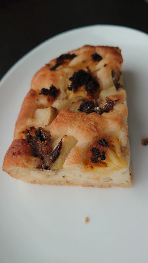 朗らかな主人に対応していただき、 「マルゲリータ風」、「ココアと金柑のコンポート」のフォカッチャをテイクアウト、 「マルゲリータ風」はトマトの甘味や酸味がしっかり感じられ生地との相性が最高、 「ココアと金柑のコンポート」もココアの風味と金柑の苦みや甘味のバランスが好みで最高でした。