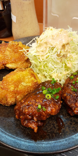 今日もオープン記念期間。甘とろタレ丼(温泉玉子、味噌汁付き)550円。 から好し、油淋鶏、甘とろと全3種制覇。 ○から好し…カリジュワのポピュラー、ニンニクダレとレモン付き。 ◎油淋鶏…生姜風味ダレが良い。 ◎甘とろタレ丼…温泉玉子の投入タイミングがカギ。 まぁ全て旨いと思います。全メニュー提供開始が待ち遠しいね。