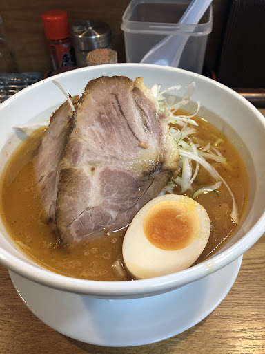 Read more今日は暑いのでチャリで遠征は辞め近所のお店を開拓です。 チャリで数分くらいの店に着くも何故か休店日でもないのに張り紙もなく閉まってました。 コロナで予想外の閉店があるので事前に数店を調べといて正解でした、北綾瀬の当店に変更、初めての店なので基本の味噌ラーメン+ライス¥970です。 客が数名ということで約5分くらいで着丼器は深さはあるが径が小さく量は少ないかなと思ってましたが杞憂でした、早速スープを飲みます基本でもピリ辛で熱々で舌に自信がない自分はよくわかりませんが美味しいのは確か、麺も味噌ラーメンと合う黄色いちじれ中太ゆで具合も固めでいい感じ、それぞれの具材はピリ辛のスープに浸り辛いですが美味しい、食べ進めるとライスも付けたせいなのか麺が思ってた以上に量があるのか腹パンになってきました。 スープも思ってた以上より飲んでしまいました。 ここは味噌ラーメン行きたい店リストに入りましたホントは星4くらいにしたいのですが足立区でこの値段はチョイ高め以前は半ライス無料を実施してたみたいなのでこ...
