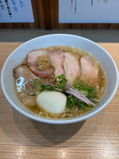 スープは名古屋コーチンの丸鶏を軸に豚の背ガラやゲンコツなどを加え、羅臼昆布やうるめ煮干し、さば節、宗田節など、計20種類以上の食材を使用し、透明感がありながら存在感のある麺に負けない重層的で厚みのある旨味たっぷりのスープを作り出している。さらに厳選された塩をブレンドした塩ダレが全体をしっかり引き締める。