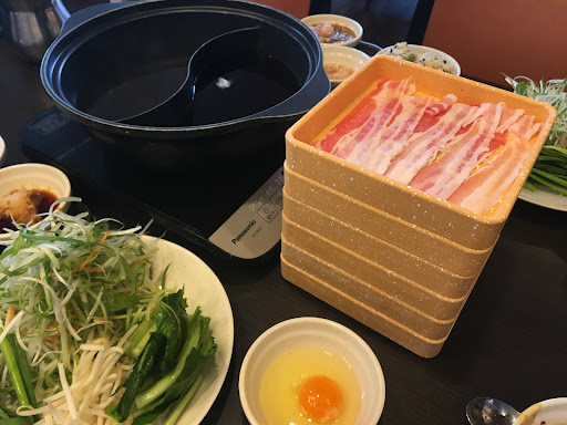 Read moreチェーン店ですが割と満足度が高めのお店。種類豊富な野菜が沢山摂れるのはありがたい。 平日ランチの三元豚食べ放題のコースがお得です。タレも色々カスタマイズ出来て飽きずに食べられます。三元豚の豚バラのクオリティはその日によってまちまちです。生卵が付いている本格すき鍋出汁と薬膳火鍋だしがスパイスも効いてオススメ。追記、三元豚バラ 食べ放題コースに鶏のモモ肉が追加されましたね。 Although it is a chain store, it is a store with a high degree of satisfaction. I'm grateful that I can eat a lot of vegetables. The all-you-can-eat Sangen pork course for lunch on weekdays is a great deal. You can customize the sauce in various ways and eat it without getting tired. The quality of the pork roses of Sangen pork varies from day to day. Authentic sukiyaki soup stock with raw eggs and medicinal hot pot soup stock are recommended...