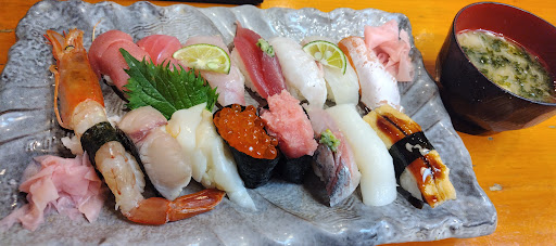 夕方に遅い昼飯で入りました。ありがたい事に通し営業です。チェーン店以外は飲食店が営業していない時間だったので、チェーン店を好まない私には助かりました。 少し手狭な感じがします。居酒屋色が強い寿司屋で、通し営業だからか、既に飲みに来ているお客さんが多かったです。 ランチは終わっていました。頼んだのは《特選10貫にぎり(1、5人前)》2800円です。クレカ使えました。 ネタは値段なりかなと思いました。あまり丁寧な仕事はしていないかなとの印象でした。穴子は厚みが無い物で、フンワリ柔らかな煮方ではないです。中落ち軍艦は業務用の脂添加物でしたし、握りも崩れやすいと思いました。盛り付けもギュウギュウに詰めてますから、寿司同士が触れていて、シャリがくっついていて剥がす時にシャリが崩れたりしました。見た目も美しくないですね。ネタの質は悪くないだけに残念です。 シャリの配合も甘いのと酸味が強いのとバラバラでした。ネタに合わせてシャリを変えているのか配合した際の合わせが雑だったかは不明ですが、不安定感が有ります。 悪くはないですが、もう少し丁寧な仕事だったら良かったと思います。 接客は明るく丁寧で良かったです...