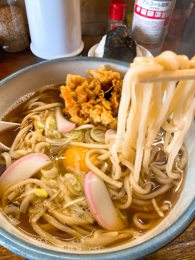 小金井駅南口の蛇の目通りの100mばかり先、こじんまりした稲荷神社の隣にある。 居酒屋🏮のランチタイムで、4、5種類の定食とうどん、そばがある。トッピングは何種類かあり、ちくわ天でうどんを注文。 おやじさんは中々の人柄で丁寧に調理してました。 少々待ったが、その甲斐あってうまかった。ちくわ天はことに良し! おやじさん「味は濃過ぎないっすか」と聞く。「ちょっと濃いけど旨いヨ。これで500円じゃ商売にナルノカね」と言うと、「昼はウチのコマーシャルです」と即座の答え。なるほど本番は夜ナノか!飲んだあとの味付けは濃いめがいいのはわかる。