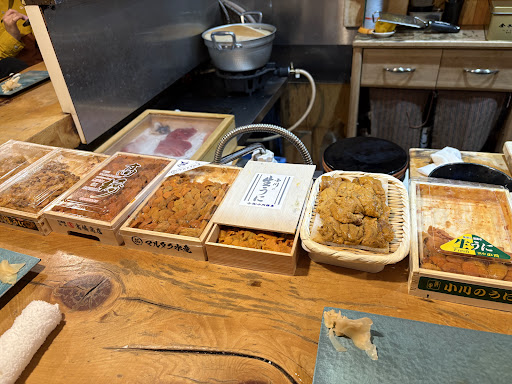 This was without a doubt the best meal my wife and I had in Japan. We got the "Sea Urchin Paradise" meal, which was a full omikase with lots of excellent fish as well as a variety of uni (I didn't even know there was a variety of uni in the world!). We got to watch the chef make each nigiri by hand in front of us, and he told us in both English and Japanese what each piece was. It was a perfect small sushi shop atmosphere, down to earth while still being absolutely amazing food. You must find time to reserve a meal here, you won't regret it!