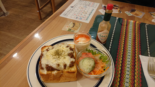 そして分厚いトーストは、あらかじめ3✕3に切り目が入れられていて食べやすく、ミートソースやとろとろチーズがたっぷり掛けられ、これは温かいし美味しかったですね♪ パンも中はふわふわで良かったです♪ このトーストは他の味も楽しめオススメですね♪