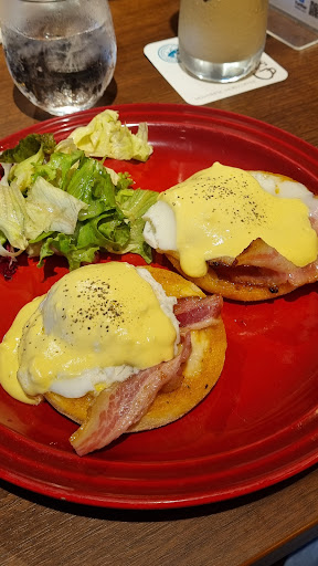 To start the day with excellent food and great comfort and environment, you can come by this place. I had Eggs Benedict plus their specialty, which is pancakes.. what flufiness and taste, slightly undercooked to preserve moisture, they're absolutely delicious! 😋