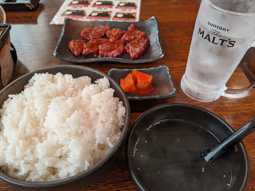 Read moreみんみんに行こうと思ったのですが、どこも30組〜50組待ちで諦め、そおいえばあったなと思い気まぐれに来店。日曜日の19時ごろ2人で行って待ち時間なく座敷に案内されました。4人席ですが、隣の卓とくっついているので距離感が気になりました。 店の雰囲気というか接客はかなり良いなと感じました。 肉は牛タン、ハラミ、ロース、お得カルビ、レバ刺しを注文。 肝心の味や食べた感想、他の方のレビューにもありましたが、安いスーパーの肉って感じです。歯切れが悪く筋が残り控えめに焼いても固いなという感じです。値段的には一般的な焼肉屋と変わらないぐらいですが、肉の質を考えるとかなりコスパは悪く、スーパーで同じ金を出した方がよっぽど美味しい肉が買えると思います。 レバ刺しは他に比べるとちょい高めかなという1600円だか1700円ぐらいでしたが、下処理というかレバーの薄皮を剥いてないのか口に皮が残る感じで食感が悪かった。 何を食べても不味くは無いけど美味しくはないという感じでした。 お腹的には余裕がありましたが、追加して食べたいと思えず腹は満たされず退店しました。 接客が良いぶん残念ですが、味でもお行く事は無いでしょう。日曜日の夕飯時に空いてるって事で...