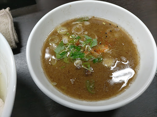 (58回目)煮干中華と味付ねぎ 煮干中華に味付ねぎを合わせてみました。少し辛味がある味付ねぎは,思ったとおり,スープが濃いめな感じが合うようです。煮干中華には元々,玉葱,木耳が入っていますが,味付ねぎのトッピングも味変になって飽きずに美味しくいただくことが出来ました。 (57回目)らぁ麺と味付ねぎ この日は「味付ねぎ」と「シビ辛味付ねぎ」が数量限定で出ているとのことで,らぁ麺に味付ねぎを合わせてみました。少し辛味の付いたシャキシャキねぎがドーンとのってきました。味付ねぎは先日いただいたねぎ豚中華のトッピング部分と思います。なかなか美味しいです。味付ねぎ自体が美味しいので,どれと組み合わせても美味しいですが,やはり濃いめ,脂多めのスープとの相性が良いかもしれません。ですので,豚中華か煮干中華の方がここの味付ねぎは合うのでないかと思います。 (56回目)煮干中華 (55回目)ネギ豚中華 (54回目)らぁ麺 (53回目)煮干し中華メンマトッピング (52回目)煮干し中華 (51回目)らぁ麺 この日はらぁ麺をいただきました。800円。麺は煮干し中華と同じストレート麺ですが,こちらのらぁ麺の方が柔らかめというか,煮干し中華のストレート麺の方が硬めの茹で上がりにされているように思います。ものによって茹で時間を変えているのかもしれません。現在のラインナップではこのらぁ麺が一番好みに合いまして,次点が煮干し中華ということになりますので,しばらくはその日の気分でどちらかをいただくことになるかと思います。また,これまでは開店時刻を狙っていくことが多く,開店早々の時間帯は外待ちが出るほど結構混みましたので,少し時間を置いていくようにしましたらすんなり入れるようになったように思います。開店早々を外すのがねらい目かなと思います。 (50回目)煮干し中華メンマトッピング 煮干し中華にトッピングでメンマをお願いしました。メンマ増しにしたところ以外は前回と同じかなと思っておりましたら,心なしかスープの濃さが増したような色合いと感じました。で,いただいてみれば,前メニューにどろ煮干しまではいきませんが,やはり濃さとざらざら感が増したように思いました。麺もパッツン系硬めのゆであがりと思いました。また,今回は特に麺量多く感じました。丼底の麺を引き上げるようにして混ぜてみれば,煮干しスープがよく行きわたり,なかなか美味しくいただきました。食べ終わって気付きましたが,和え玉はこの煮干し中華と合わせて残りスープで和えるのも美味しそうと思いました。 (49回目)らぁ麺と和え玉 まず,らぁ麺が供されまして,和え玉は出して欲しいときに言ってくれとのことでしたので,自分は食べるのが早いので,すぐに作っていただくようにしました。らぁ麺は自分好みの醤油ベースのスープ,中細ストレート麺のすっきりしたラーメンで,TP具材も整理されたのかこのらぁ麺に合うように思います。想定とおり,麺,TP具材をいただき終わった頃に和え玉が供されました。ただ,和え玉はサイドメニューで250円ですので麺半玉相当かなと勝手に思っておりましたが,おそらくは一玉分と思います。和え玉は細麺に刻みチャーシューと玉ねぎが乗りますが,丼底に煮干し醤油だれがある訳ではありませんでした。混ぜてもあまり味がしませんでしたのでらぁ麺の残りスープを投入またはつけだれにしていただきました。以前にかえしの入れ忘れと思われることがありましたが,今回はどうなのか気にはなりますが。いずれにしても満腹になりました。 (48回目)つけ麺 やや待って,薬味(ねぎ,ゆず,七味)がまず供され,続いて麺とつけ汁が供されました。麺は太麺でTP具材は厚切りチャーシュー,レアチャーシュー,きくらげ,ねぎ,海苔で,つけ汁は濃厚魚介の魚粉入りでした。太麺へのつけ汁の絡み,持ち上げ良くなかなか美味しいつけ麺に仕上がってます。きくらげのアクセントが嬉しいところで,麺そのものもツルシコで美味しいです。5月のメニュー改定でメンマがノーマルTP具材からなくなったまたは少なくなったこと,つけ麺の課題であろう,終盤つけ汁の温度が下がること,美味しいけどお店の独自感が薄くなったところが残念ポイントではありますが,美味しいのは間違いありません。 (47回目)煮干坦々 出て来たのはなかなかに辛痺そうなものでした。TP具材は,チャーシュー,もやし,きくらげ,長ねぎ,玉葱,肉味噌,煮干しペーストなどで麺が見えないほど多いです。見えるところのスープは真っ赤ということもあって,下から麺を引き出しながら,混ぜるようにしていただきました。スープは唐辛子が効いた感じでかなり辛く,肉味噌は痺れ卓越といった感じですが,煮干しペーストの効果か煮干しのこくも感じられました。完食完飲しましたが,食べ進めるうちに辛さが支配的になったなかなか刺激的な一品でした。 (46回目)豚中華 白いスープは九州のとんこつラーメンを思い出させますが,いただいてみれば,塩ベースのすっきりスープに背脂の甘味といった感じです。麺は中