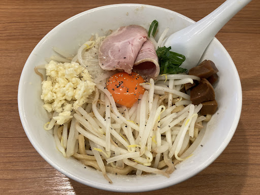 Read more2022年7月 平日の11:10頃訪問。先客は3名。入口の券売機でつけ麺850円を購入。 濃厚昆布水なるものが添えられるらしい。待つこと13分ほどで到着。昆布水は別壺に入っての提供で、麺を半分くらい食べた頃合いで麺の丼に注いでお召し上がりくださいとのこと。まずつぶつぶのシミが見える全粒粉を混ぜた麺のみをすする。水分多めでもっちりしているが、もぐもぐと咀嚼しないと飲み込めず、喉越しはイマイチ。続いてつけダレに浸していただく。鶏の風味を全面に押し出したものだが、匂いが強過ぎる。自分にはブロイラー臭に感じられ、好みにあらず。鶏で頑張るとこうなるんだよなぁと定説にすら感じる。で、昆布水。まずそのまま飲んでみる。けっこうしっかりとしたダシの味がする。麺丼に全て注いで、麺に絡ませてつけダレに浸して食べる。うーん、鶏の匂いにかき消されるというか、合っているとは言い難い。もぐもぐが求められる麺は後半きつくなり、ふた口ほど残しました。麺、つけダレ、昆布水のバランスがイマイチでした。特に昆布水の必然性は感じられませんでした。 ----------2022年1月 休日の14:20頃訪問。こちらは新宿のはやし田さんと兄弟店で本格志向のお店ですが、まぜそば豚麺780円という二郎風のメニューもあり、こちらを購入。食券回収時に「にんにく入れますか?」の問いに“お願いします”と答えて着席。二郎風だが麺大盛りやヤサイマシなどはできない。待つこと10分程で完成。丁寧にまぜまぜしていただく。外側はゴワッと歯応えがあり中心はもっちりとした麺。咀嚼するほどに小麦の風味が漂って実に美味しい。タレはまろやかで旨みをたっぷり感じる。この控えめなタレが麺の旨さを際立たせていると思う。絶妙だ。ときどき粗微塵のニンニクが口の中ではじけピリピリとした辛味が襲う。良いアクセントで二郎がよぎる。麺量は200gくらいか、私にはちょうどいい。二郎の要素を取り入れつつ格調高い一杯に仕上げたた秀逸なまぜそばだと思います。----------2019年9月...