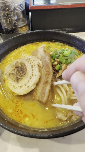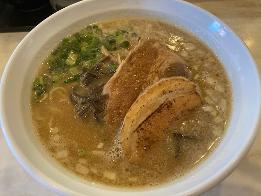 ラーメンの麺は博多豚骨で使われる様な細麺ストレートでスープと絡みはばっちりですが麺量は体感170gくらい?です。 具は刻みネギ、極細のメンマ、チャーシューは2枚種類違いのもの。どちらも大きく箸が進みます。 特に角煮風な味付けがされてる一枚がとんでもなく美味しい!