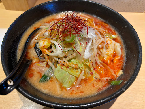 I had the miso ramen, the apparent specialty. I liked it more than I like other miso ramen. The flavor wasn't so heavy, and the broth not so thick, so I could easily eat / drink it all. It had a nice acidity giving it balance. I'd recommend adding extra meat, because the single piece that came with it was quite small. I liked the flavor and texture of the included vegetables, which are stir fried in a wok before being added. I enjoyed watching the master work. Atmosphere wise, it's just the same as any ramen shop, many people quietly eating by themselves. For an in and out experience, it's good. I wasn't blown away by the ramen itself on the whole though, so that's why I decided to give it...