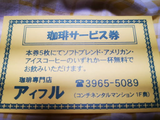 このような喫茶店でコーヒー1杯頼んで待ち合わせ相手をのんびり待っていた頃を思い出しました。昭和レトロ喫茶店をお探しの方にはとてもおすすめ。会計時のサービス券があるのも懐かしい昭和式。しかも5枚でコーヒー(ソフトブレンド、アメリカン、アイス)がいただけるのはお得です(昔のこの手のサービス券は10枚貯める必要があったかと)。常連さんらしいお客さんが次々やってこられてほぼ満席。地元に愛されるお店のようです。