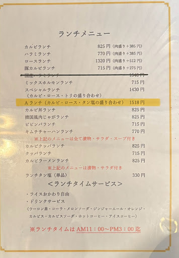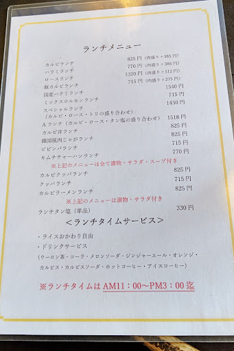 小学生低学年の息子と二人だったので、2人前を注文しようか、迷っていたところ、メニューに「ランチタン塩」が!!なんと嬉しい♫ なので、カルビランチ一人前とランチタン塩を頼み、二人でお腹いっぱいになりました!! ランチはご飯もおかわり自由というのも魅力的でした。