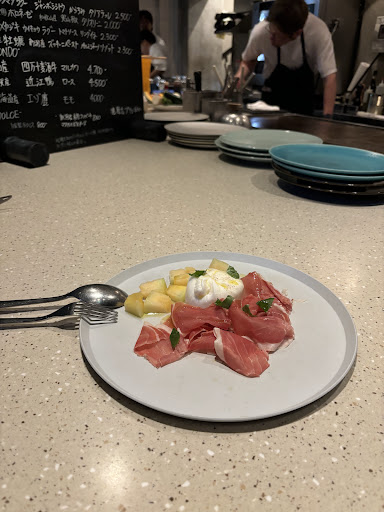 We were looking forward to Brutto after a recommendation but it didn’t live up to expectations. It’s a very Japanized style of Italian. Ordered beer and got half a small glass for ¥950 and all the following wines were average and poorly matched. The food was ok, the antipasto combination had a few nice things but they screwed up the tempura dish and the sashimi was a little strong (see what I mean about more Japanese than Italian). The primo dish of bolognese was prepared in front of us down to the pasta maker and slicing - but then they way overcooked the spaghetti making it soft and mushy. The wine recommended for this dish would be ok for a summers day outside drinking wine and eating mild cheese but not for a strong flavorful ragu. Oh and it was at this time we noticed the chef using the same spoon to try things over and over again - and putting in a jar rather than cleaned - and then used again for another tasting. Not hygienic. Meat dishes were passable, but with such a stunning teppanyaki there is no excuse for serving pork with a floppy fatty outer when that can be crisped up perfectly. Like many chefs here the focus is making the meat interior perfect and forgetting the rest. The wine here was a bland Italian cab sav when I had asked for something bolder - there are a dozen Italian grapes that would be more suitable. Finally, the veggies were floppy and greasy probably because the chef squirts too much oil on the grill and doesn’t let it warm up before throwing on the sliced veggies. Dolce was ok, but not I expected with shaved ice on coconut panna cotta....