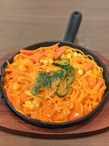 鉄板ナポリタンはグツグツと熱々の状態で届くので火傷注意。生クリームが加えられているので味がボンヤリしそうだが甘みと酸味がしっかり効いているのでバランスの良い美味しさに仕上がっていてとても美味しい。具材も豊富だし満足度高め。