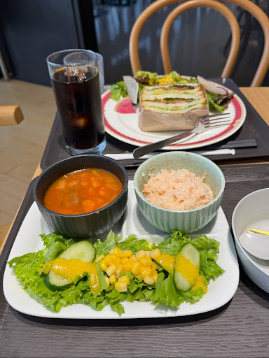 私が1番好きなメニューは、名前忘れたけどサーモンとアボカドのサンドイッチとサラダも盛り合わせ的なプレートが好きです。無性にサラダが食べたい時に利用しています。(´﹃`)