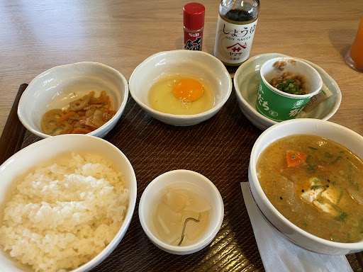 Read more朝ごはんに豚汁定食がある!と頼んでみました。 が、肝心の豚汁がイマイチ。油っぽく表面に油の層が、、、豚の油なら旨みもあるでしょうが、サラダ油っぽい、でも少しクセのある油で気持ち悪くなりました、、、 オーダーはタッチパネル、配膳は猫ロボ、会計も機械でと、人と触れ合いたくない方には便利なシステム。 個人的な希望としては、朝もう少し早くからやって欲しい。以前は使えたコンセントが全て使えなくなっていた。コンセント使わせて〜。 そして何より豚汁を美味しくしておくれー。