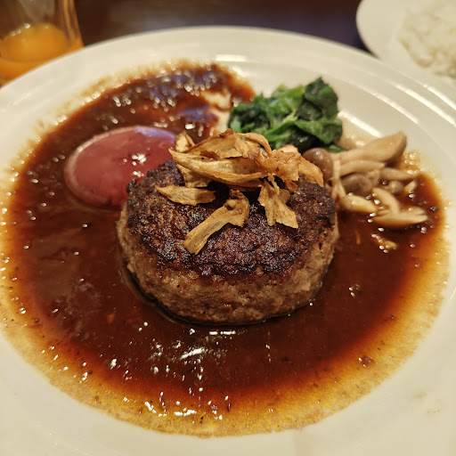 I loved the hambagu with Périgueux sauce very much! I added rice but didn't think it was necessary since there was a bit of mashed potatoes in the hambagu plate. It came with a poached egg covered in a purple sauce....