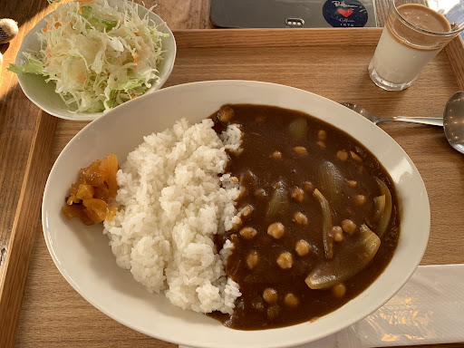 〜〜〜〜〜〜〜〜〜〜〜〜〜〜〜〜〜〜〜〜〜 ・ひよこ豆のカレー(1050円) 〜〜〜〜〜〜〜〜〜〜〜〜〜〜〜〜〜〜〜〜〜 サラダ、プチデザート付 ・サラダはキャベツの千切りベースにオイルのドレッシング ・プチデザートは杏仁豆腐のキャラメルソースがけ的な感じです★☆★