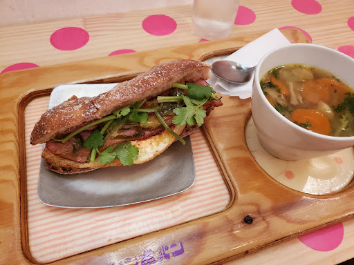 Read moreテレビで紹介され、ちょうど翌日に近くに用事があったので、午前11時前に伺いました。 パン屋さんですが、イートインがメインなのか、普通にあるベーカリーを想像すると通り過ぎてしまいそうです。 イートインを利用し、人気のバインミー(フランスパンのサンドイッチ)をいただきました。中身は、目玉焼きとベーコンにしました。 作るのに15分くらいかかりますと言われ、特に急いでなかったので待っていました。たぶん20分以上待ったと思います。 フランスパンはカリッとして、美味しかったです。フランスパンのサンドイッチにあるベチャッとした感じはありません。 イートインですが、テイクアウトの値段で食べるので、飲み物等のオーダーが必須です。私はスープ(600円)にしました。野菜たっぷりで美味しいコンソメスープでした。 パンもテイクアウトしました。お値段は高くありません。 ベーカリーみたいに大量のパンが並べて売っているわけではないので(小さなケースに並べられています)、当日食べられる量だけ買うのがベストです。 早く売り切れそうなので、購入される方は早めの時間帯がいいと思います。
