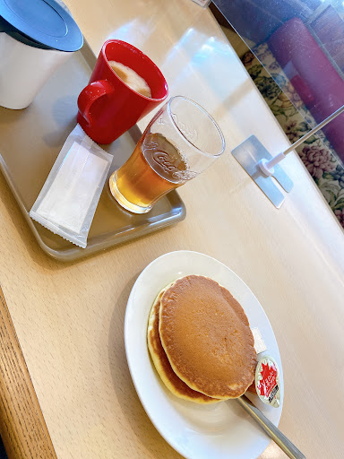 They have tablets at the table to order food in Japanese or English. They have the best french toast I've ever tried. It gets served sizzling on a hot plate and I usually get it with the option of ice cream to put on top. Oishii!! Honestly, I've had other things there as well and they are really tasty, just the french toast was a game changer for me as french toast goes. Can't go wrong with this place. You can get the drink bar seperate or it comes with certain meal selections, you will be able to see on the picture of what you are ordering if drinks are in it to indicate drink bar. They have espresso/coffee machines in katakana to depict what drink you are selecting. Brush up on...