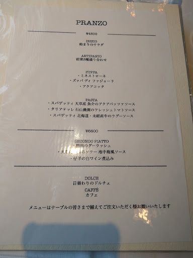 コースの中で選べるズッパとパスタは、同じテーブルで同じものを注文しなくてはならないそうです。 お料理のシェアはできないですね。