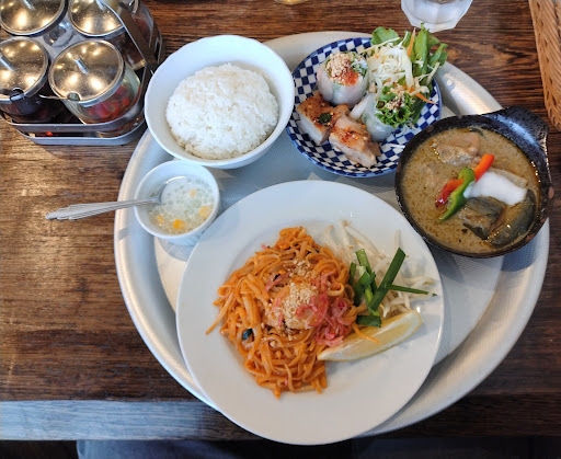 Read more亀有駅から歩いて5.6分程、環七沿い。 以前から気になっていたが、今回は初めてランチで来訪。 店の外観より中の方が落ち着く雰囲気。 平日のランチ時満席で入れ替わり立ち替わりの人気店。 ランチセットのガパオセットを注文。 サラダ、スープとタピオカ入りのココナッツミルク付き。 連れはトムヤンクンヌードルのセット。 サラダとミニのガパオライス付き。 メインはもちろん、セットのスープもとても美味。 トムヤンクンヌードルにミニライス付とあったがミニガパオとは嬉しい驚き。 減点は少し時間が掛かった事と、スープやヌードルの温度が低かったこと。 熱々で提供されたら、味もとても良いし最高。 あとガパオの肉が叩いた粗微塵の鶏肉で無く、ただの挽肉だった。一年前の写真と違う。でも美味しかった。 辛さの調節可能。パクチーの増量は100円〜プラス料金。 ご夫婦かな?サービス一人とキッチン一人でやられてます。 他のメニ...