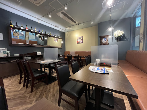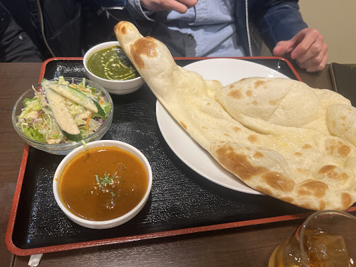 店内は明るく広々としており、ゆったりと食事を楽しめる雰囲気が魅力です。メニューには様々なカレーが揃っており、バターチキンカレーやキーマカレーなどの人気の定番カレーから、スパイスの効いた本格的なカレーまで楽しめます。特にナンはモチモチで香ばしく、カレーとの相性が抜群です。