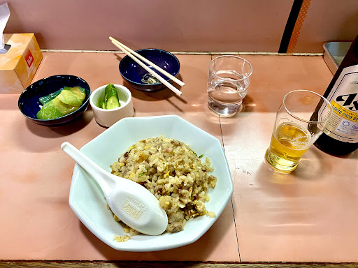 Read more驚きの隠れラーショ。 佇まいからいつか入ろうと思っていたお店。 半ラーメンと半チャーハンのセットとビールを注文。チャーハンもとても美味しく、最近なかなか見かけないタイプのしっかりしたもので、子供の頃中華屋で夢中になって食べていた懐かしい味がここにありました。塩分は控えめでした。 お年を召したおば様が1人で切盛りされているので、ラーメンは懐かしいタイプの醤油ラーメンが出てくるのかなと思っていたら、まさかの豚骨。というか、どう見ても食べてもラーメンショップのそれとしか思えない! お話を伺うと、もともとはラーメン屋台から始められたそうで、ラーメンショップとご関係が深く、使っている麺、醤油、スープ全てラーメンショップと同じ物とのことでした。 チャーハンをバクバク食べながら優しめのラーショスープを豪快に啜る。また悪い遊びを覚えてしまいました。 断じて中華屋がオマケで作る退屈なラーメンでは無いです。価格やノスタルジー性(ラーメン遺産としても)も含めてと...