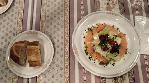 ラストオーダー 19時30分 室内は四人掛けの机が五つほど こちらには 接待を受けて 訪れて以来 20年ぶり で 今回 は バレンタインデー で家族と 訪れました 2度目になります 鳥と魚料理を選択しました 具体的には ヌーボー コース のオードブル スモークサーモンの料理 メインは鴨もも肉のコンフィ を注文 フランスパンを食べながら 飲み物は紅茶、デザートゆはMango ショコラ を 選びました 別料金になりますがワイン赤5種類白5種類 ロゼ 1種類 それぞれ ボトル注文ができます 洒落た店だと思います 野菜の 柔らかさと...