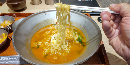 I wish the have smaller fried chicken portion for 2 people. Ordered half & half nene fried chicken with the bone (original & sweet sour sauce) and vegetables pancakes cost me ¥3.920 Original chicken was tasteless, i think they don’t even season the chicken The sweet sour sauce tasted amazing I don’t like how the coat the chicken with too much flour to make it extra crispy, feel like I ate more crispy flour than the chicken it self. Vegetable pancake was crispy but tasteless, may be that’s the reason they add a little sauce ots. When we were there, there were 2 sources of music the one that came from their tteopoki counter at the front and the one that came from the tv inside the restaurant, & each of them playing different songs, loud and we didn’t like it.