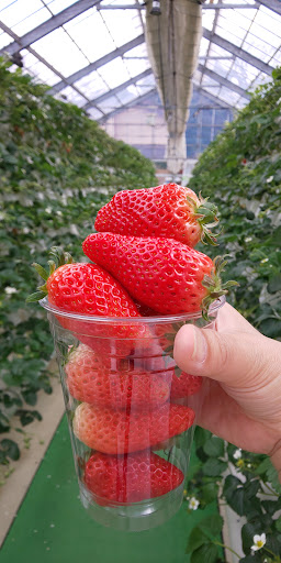 併設させてるイチゴ狩りのハウスでは食べ放題ではなくカップ一杯で30分1100円です。前日の10時から電話で予約ができます。イチゴは肉質が柔らかくて市場に出回らない章姫。大きく実って甘くて美味しい...